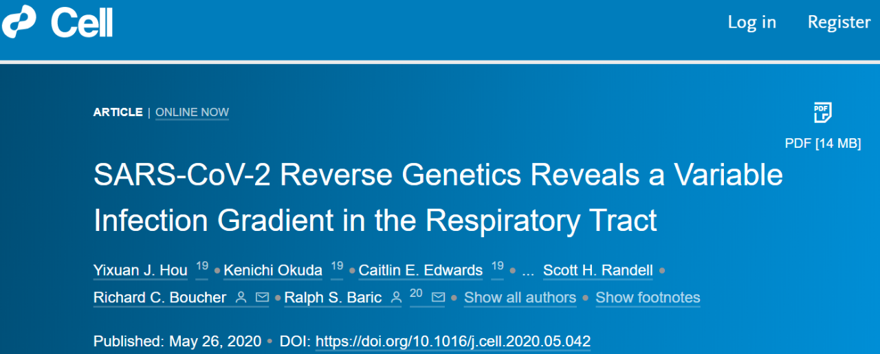 5月26日,著名学术期刊Cell在线发表了农业与生物学院优秀校友侯怡轩为第一作者的新冠病毒研究文章,题为“SARS-CoV-2 Reverse Genetics Reveals a Variable Infection Gradient in the Respiratory Tract”。