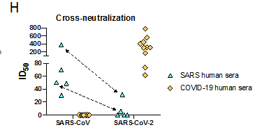 SARS、COVID-19病人血清样品对SARS病毒与新冠病毒等交叉中和反应