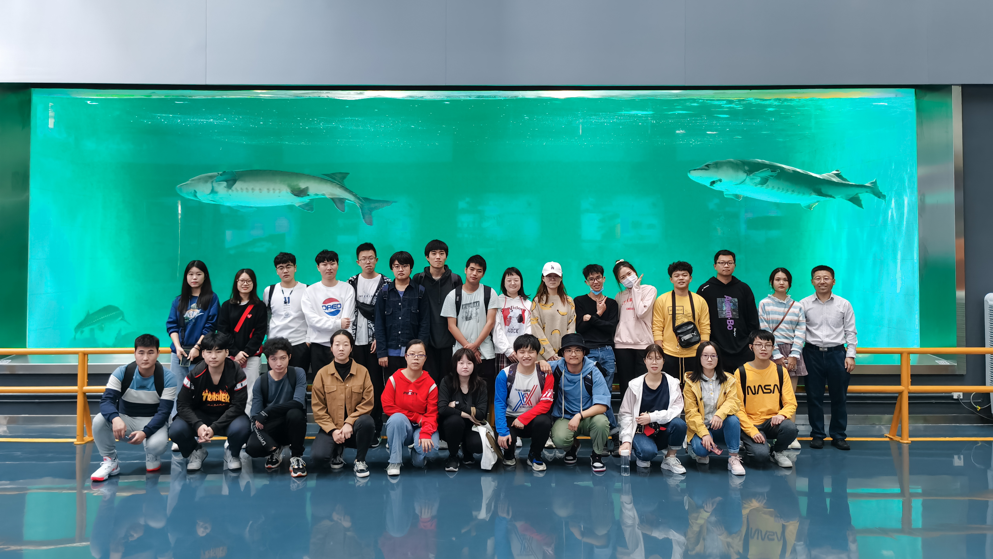 中华鲟保护基地主要负责中华鲟物种和种群的研究及保护区内自然生态环境管理,人工繁殖,增殖放流及科普教育等,也是“水中大熊猫”种群延续及保护研究的重要承担机构。中华鲟体型之巨大,只有真正见过它们的人才懂。保护基地的工作人员向同学们介绍了中华鲟的洄游路径,这一已在长江中生活了几百年的鲟鱼,在如今人类活动的频繁干扰下已几近灭绝。然而,人们不断意识到自然之于人类的重要,已在积极采取措施对其进行保护。同学们在工作人员带领下,了解了中华鲟的生活习性,室内繁殖设施,野外放流条件。深深地感到作为一名动科专业的学生,也可以在未来为动物保护贡献自己的力量!