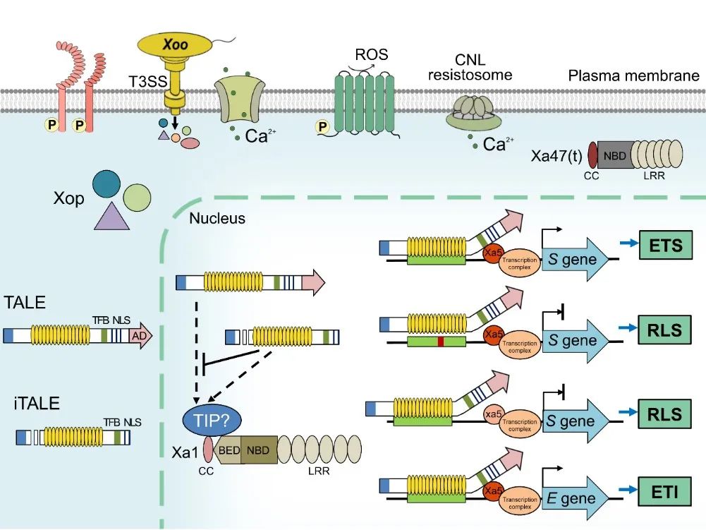 Fig. 1 Working model of rice immunity triggered by transcription activator-like effectors (TALEs) and Xops of Xanthomonas oryzae pv. oryzae (Xoo), the causal agent of bacterial blight (BB) in rice