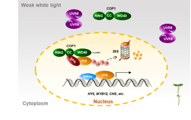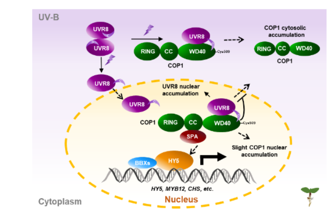 图1. COP1在UVR8信号通路中的作用模型