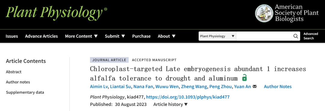 Plant Physiol — 安渊团队揭示MsLEA1调控苜蓿适应干旱和铝胁迫的分子机制