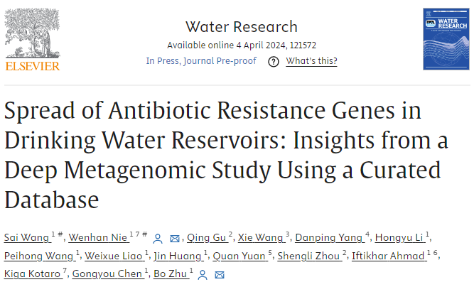 Water Research — 朱勃/陈功友团队揭示抗生素抗性基因在饮用水水库中的分布和传播