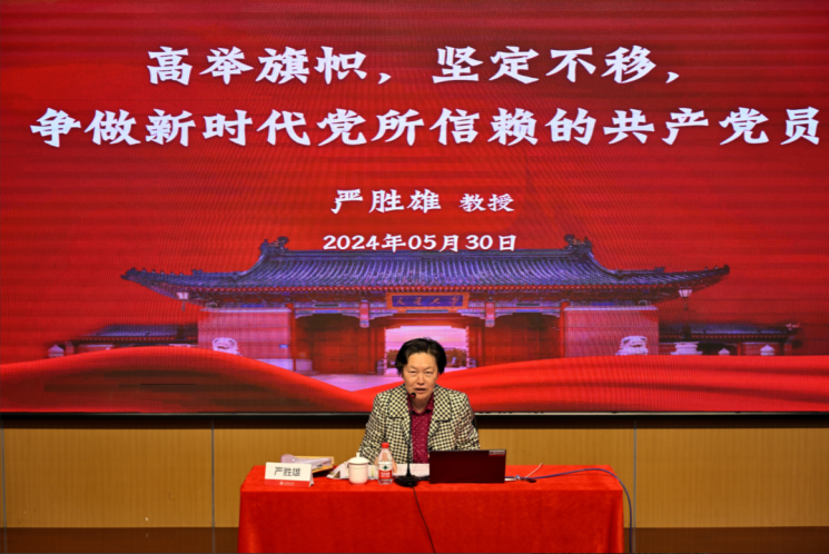 原上海市委农办、市农委副主任严胜雄教授为全校学生党员开讲“高举旗帜,坚定不移,争做一名新时代党所信赖的共产党员”主题党课。她希望,学生党员要带领同学们率先争做让党放心的接班人,要做到政治强、思想正、组织坚、纪律严,并勉励同学们“在党、爱党、想党、为党、兴党、强党”,进一步砥砺对党的忠诚之心,对人民的赤子之心,对事业发展的进取心和责任心,争做新时代党所信赖的共产党员和党放心的接班人。