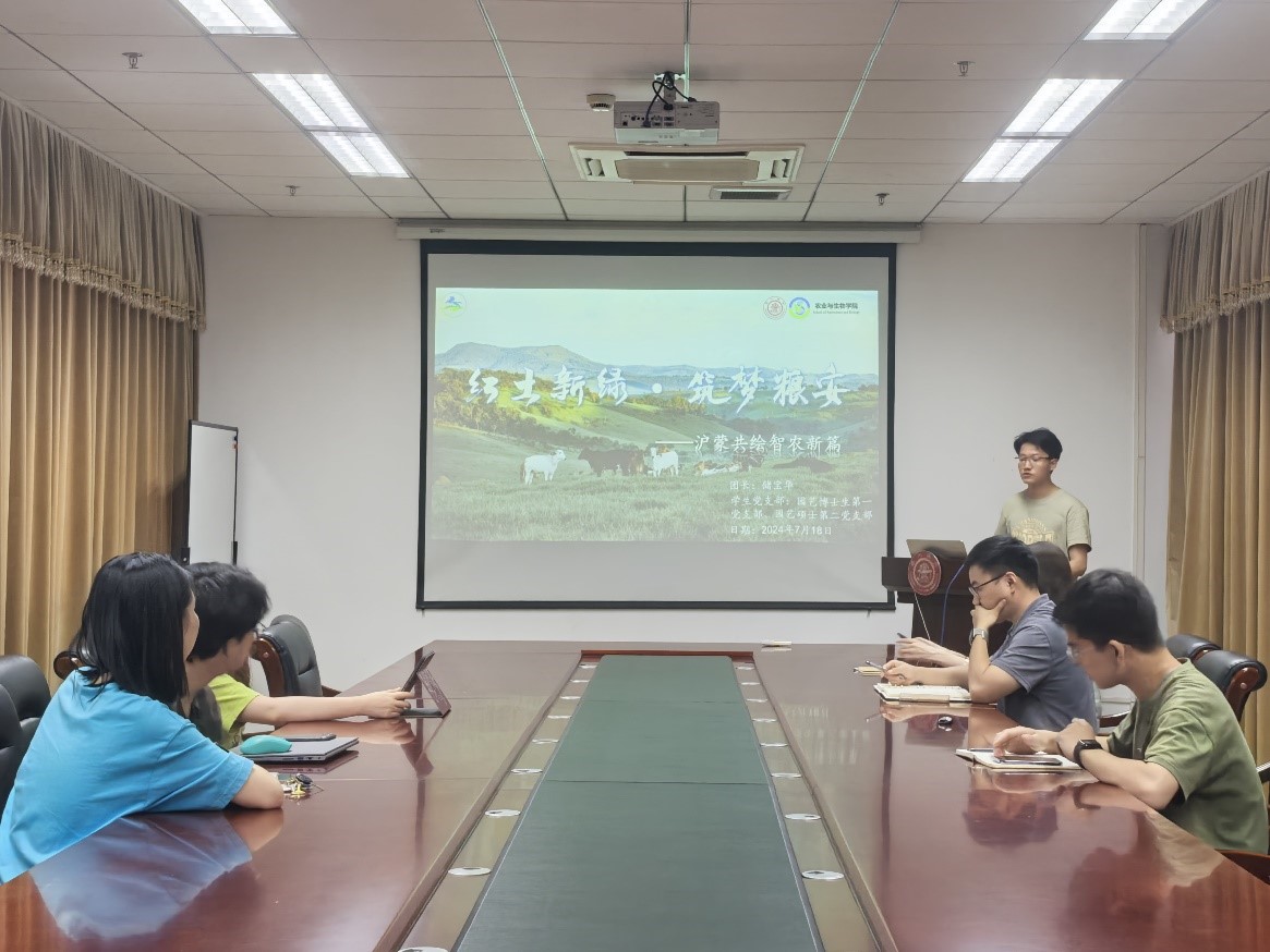 7月18日,由新农村发展研究院党支部联合园艺博士生第一党支部、硕士生第二党支部开展的“红土新绿•筑梦粮安——沪蒙共绘智农新篇”内蒙古实践团启动仪式在农业与生物学院创新楼举行。学院学工办党建负责人陈林屾、新农村发展研究院党支部书记曹正伟、组织委员高岩以及全体实践团成员以线上线下形式出席本次启动仪式。活动由实践团团长储宝华主持。