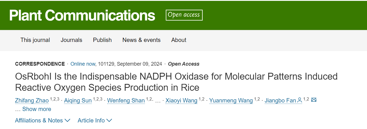 Plant Communications—范江波课题组证实OsRbohI才是水稻先天免疫反应活性氧爆发的关键因子
