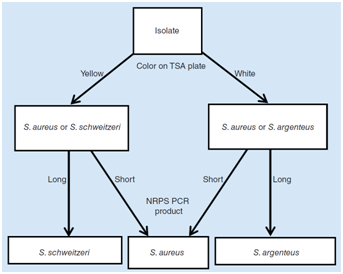 之前银白色葡萄球菌被认为是金黄色葡萄球菌的一个亚群,直到2015年初才正式被认定为新的物种。两者最明显的差异在于银白色葡萄球菌因缺少操纵子crtOPQMN无法合成黄色色素呈现白色,但是金黄色葡萄球菌也有约10%的分离株是白色,正是这一类菌株的存在增加了区分两者的难度。