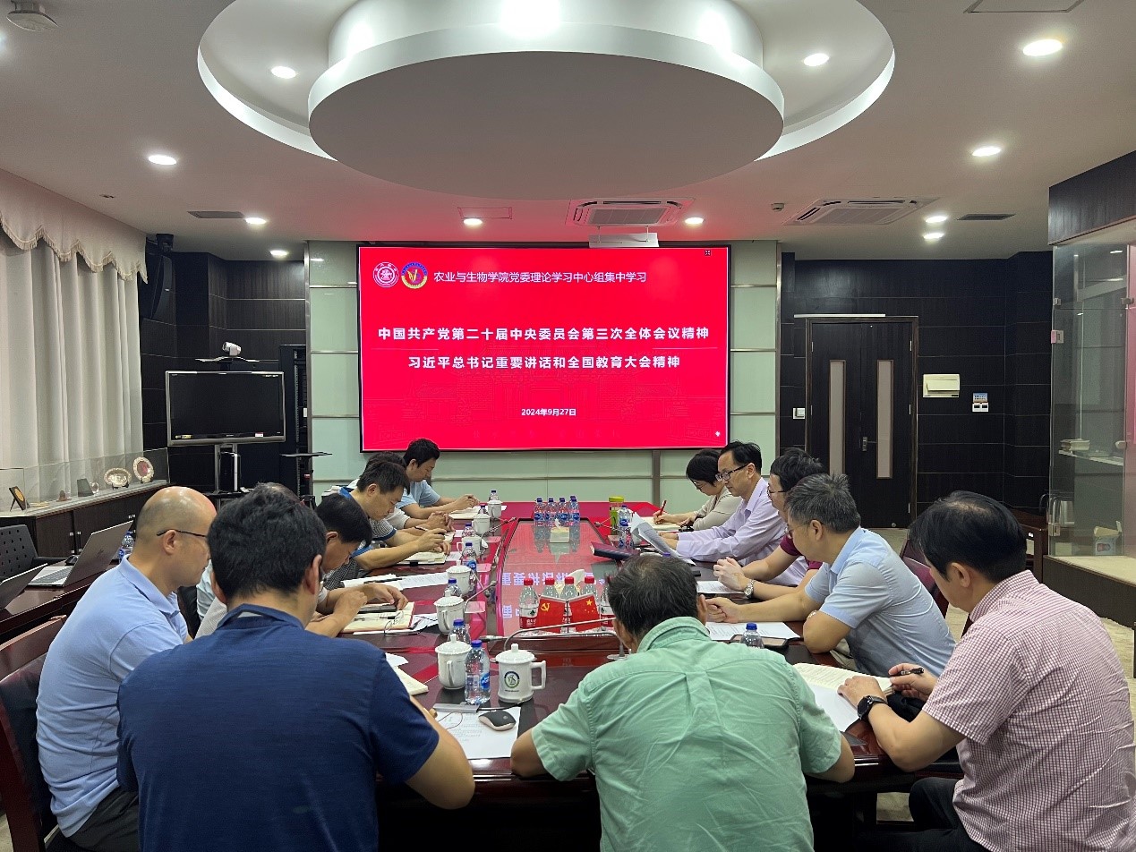 9月27日,农业与生物学院理论学习中心组召开专题学习会,集中学习二十届三中全会精神和全国教育大会精神,全体中心组成员参加,学院党委书记侯士兵主持会议。