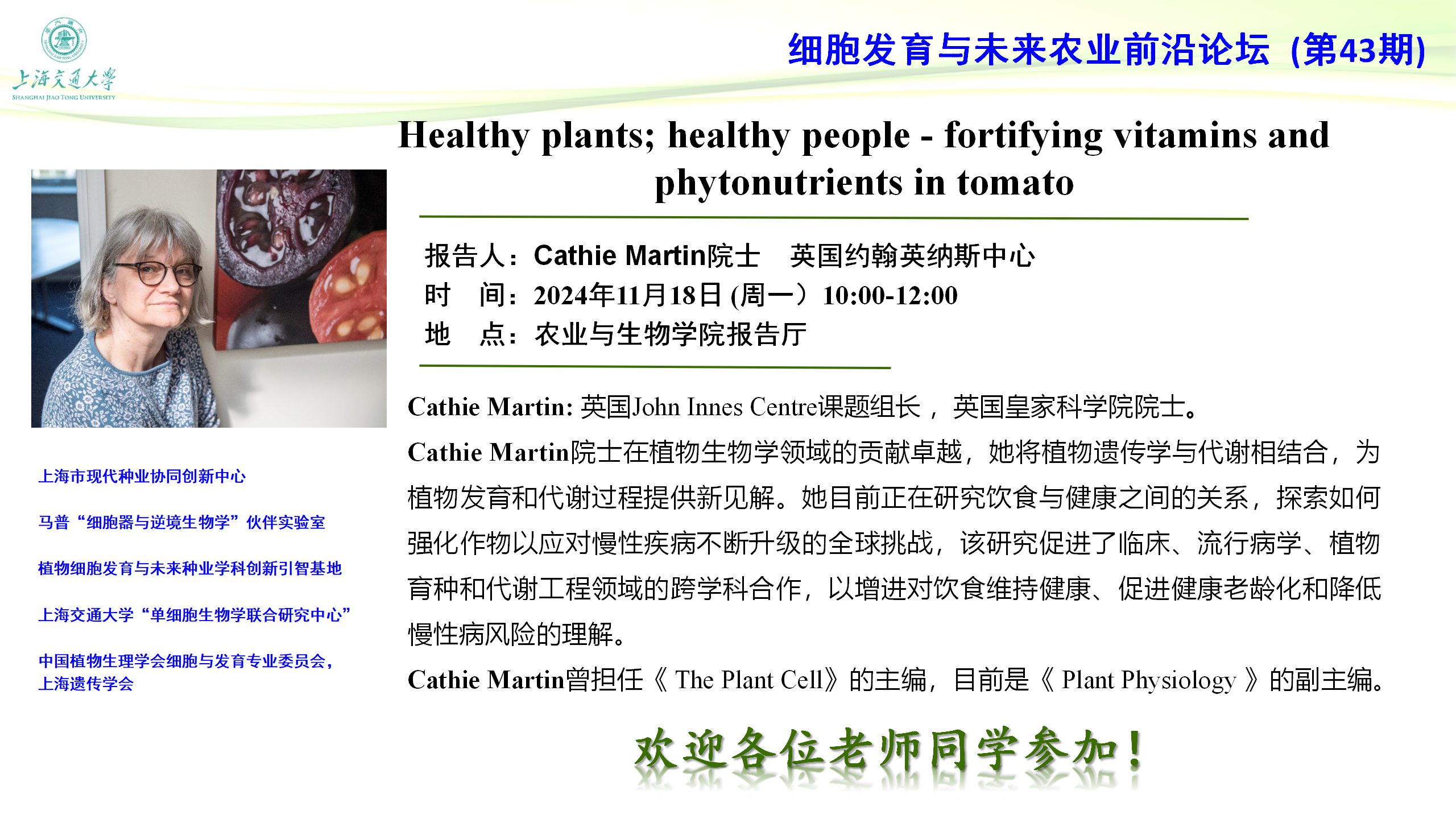 【细胞发育与未来农业前沿论坛第43期】Healthy plants; healthy people - fortifying vitamins and phytonutrients in tomato