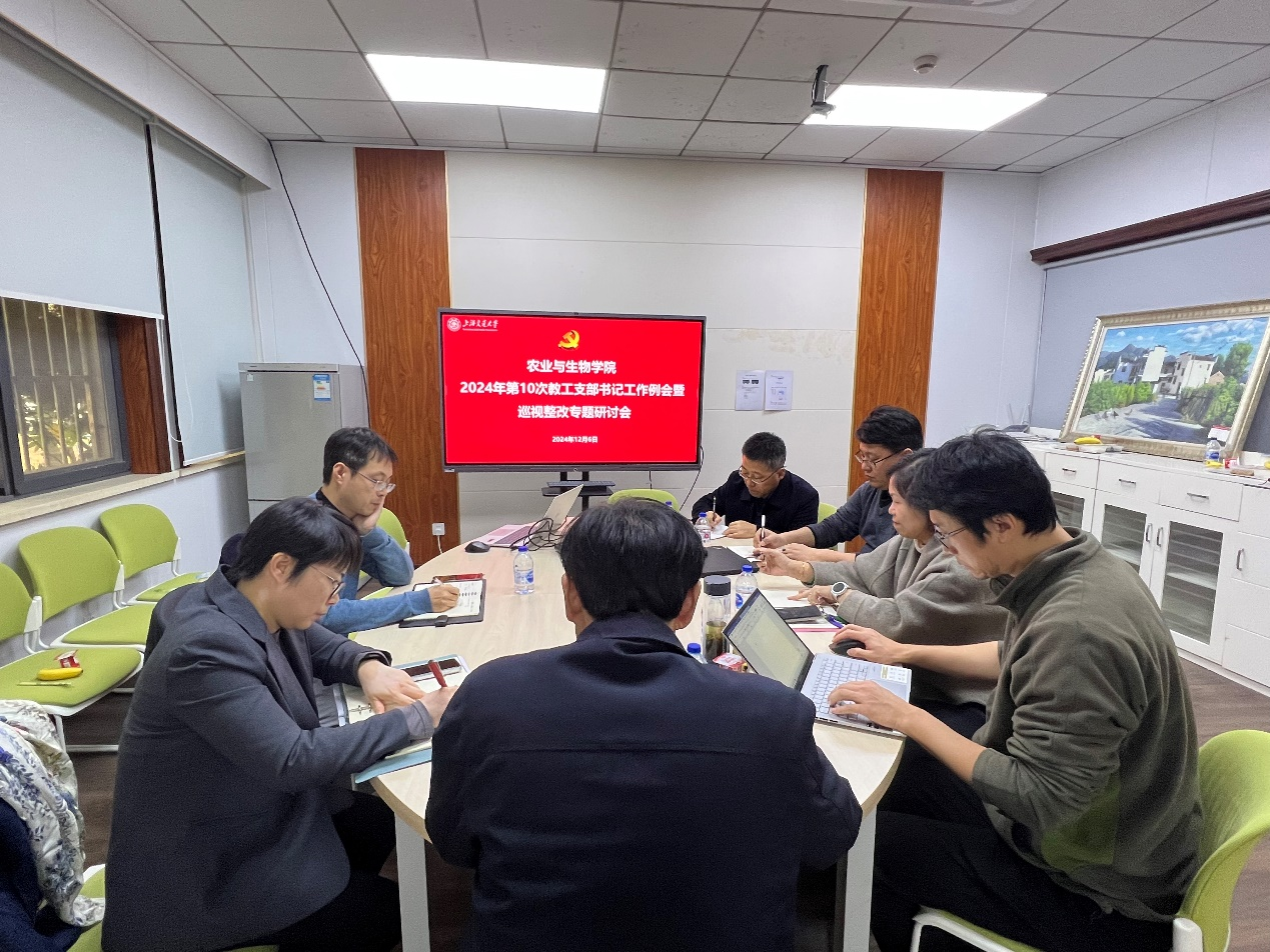 12月6日,农业与生物学院党委召开2024年第10次教工党支部书记工作例会暨巡视整改专题研讨会,党委书记侯士兵、党委副书记陈菡、李文纯、党政办主任杜骁、组织员李元莉、教工党支部书记和学生党建负责人参会。会议由侯士兵主持。