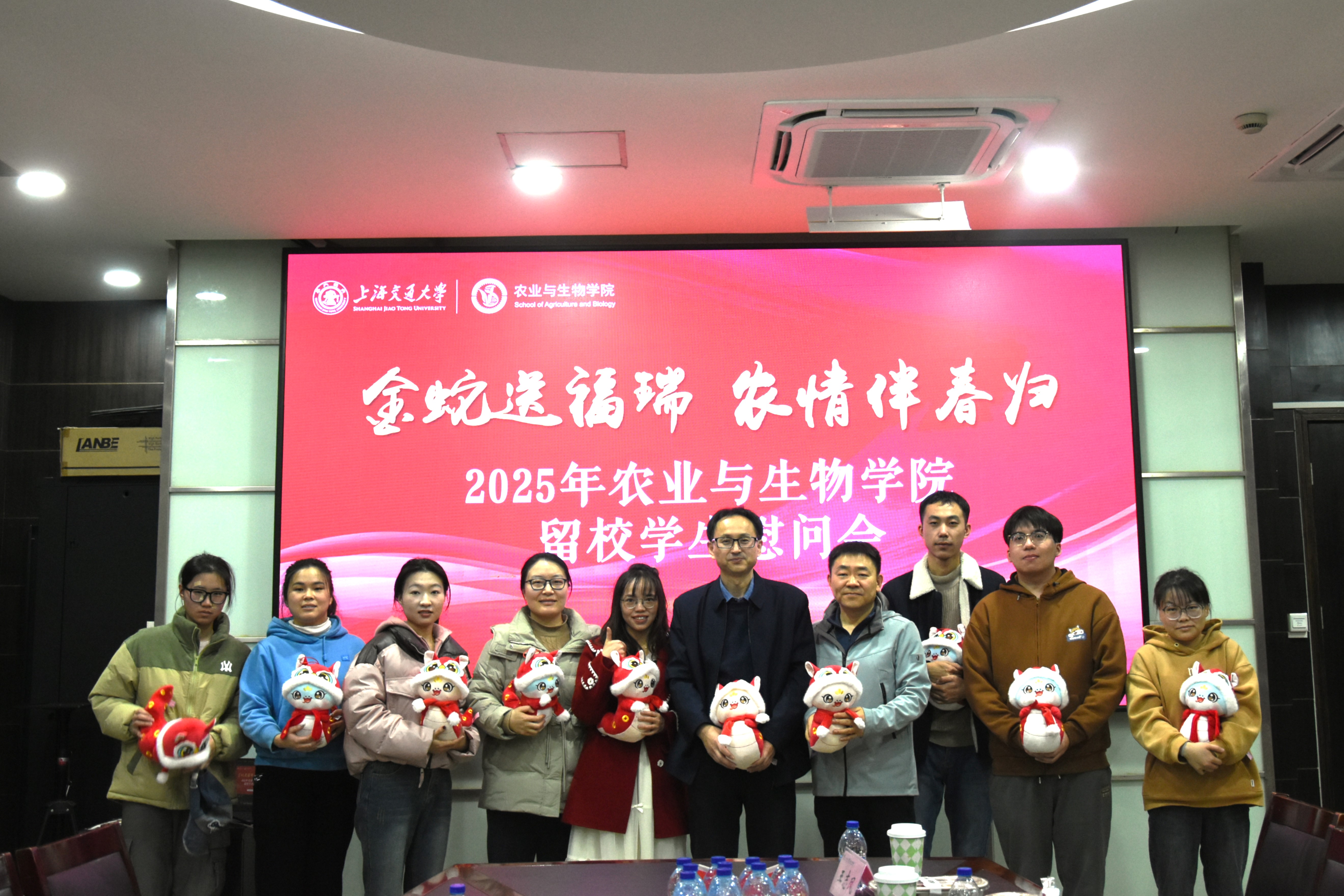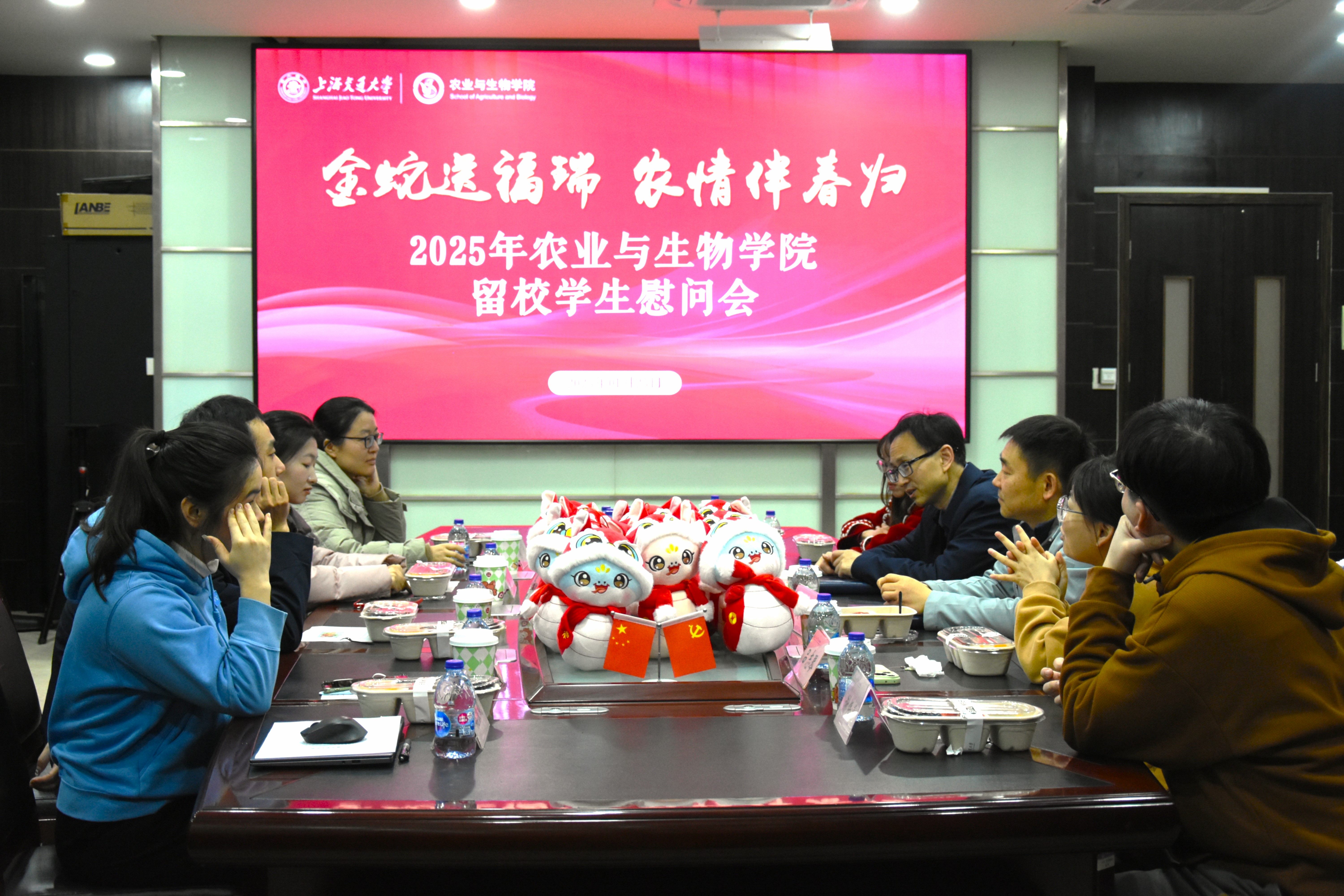 2025年1月25日,农业与生物学院开展了寒假留校学生迎新春慰问活动。学院党委书记侯士兵、副书记李文纯与近10名学生代表座谈。学院还为留校学生准备了丰富的慰问礼包,关心关爱寒假留校学生。