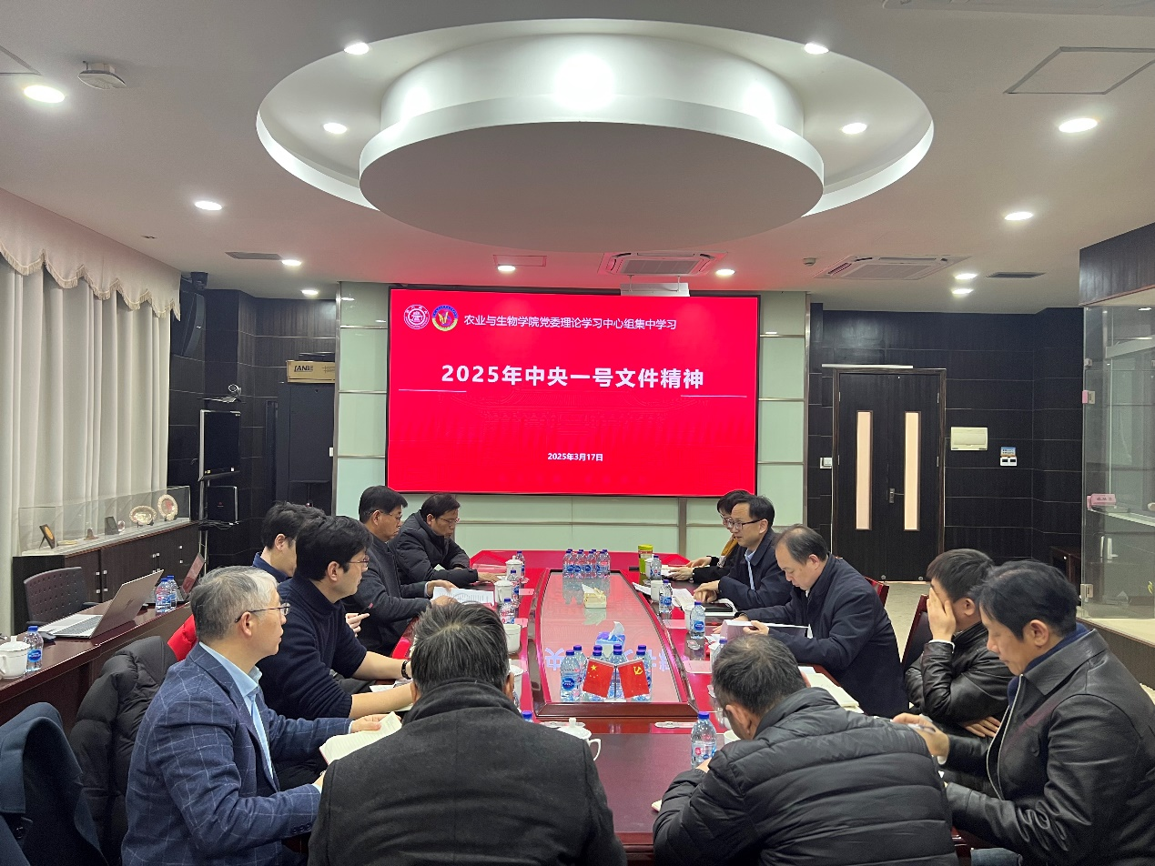 3月17日,农业与生物学院理论学习中心组召开专题学习会,集中学习2025年中央一号文件精神,全体中心组成员参加,学院党委书记侯士兵主持会议。