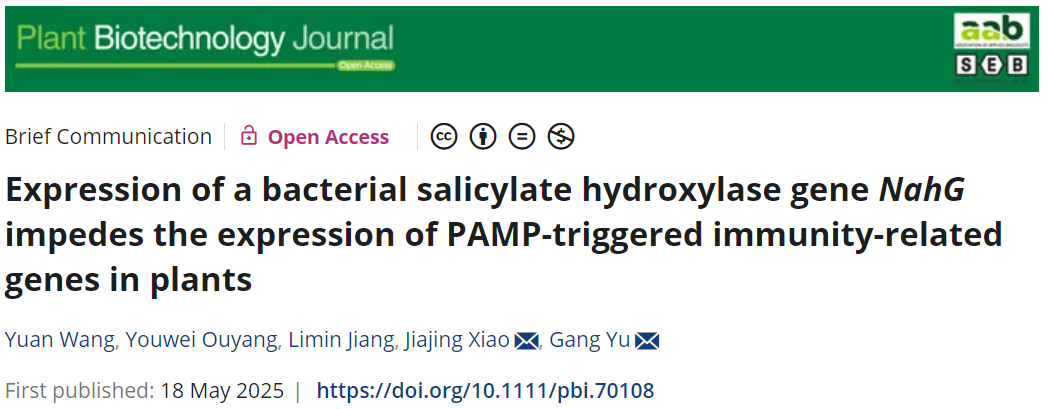 Plant Biotechnology Journal-余刚课题组及其合作者揭示假单胞菌NahG基因调控植物PTI抗病性新视角