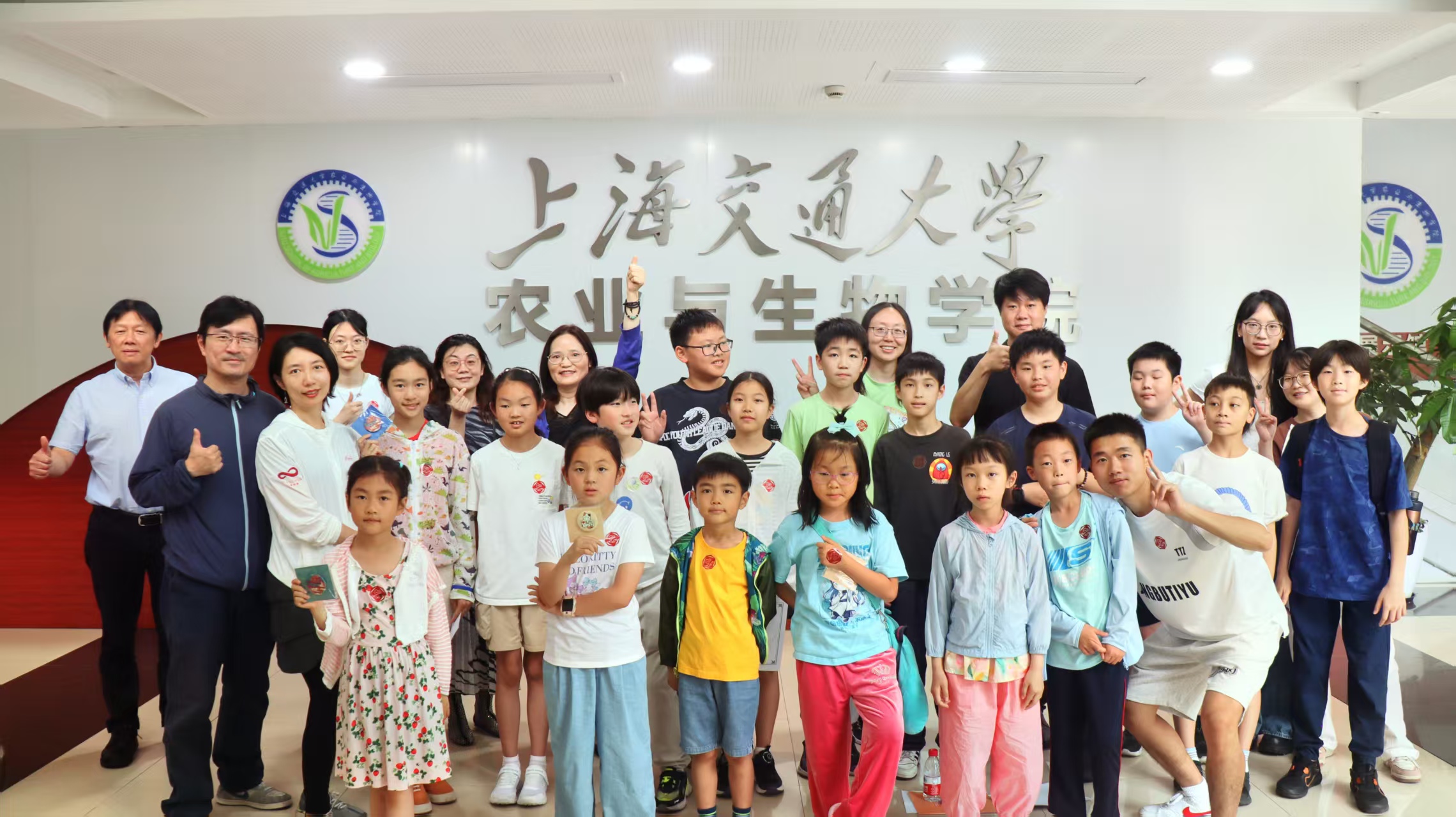 科普活动结束之际,老师们为每位小朋友送上了上海交通大学的徽章,以此鼓励。此次活动,不仅为参与者呈现了一场富有创意和教育意义的讲座与实践,也积极推广了科普工作。通过这样有趣而又科学教育鲜明的主题活动,将激发青少年对生物科技创新与发展的兴趣,为培养更多优秀人才加入到生物领域研究发挥影响力。同时也普及了民众对噬菌体认识,进一步理解噬菌体制剂在未来医学和农业等领域的广泛应用价值。