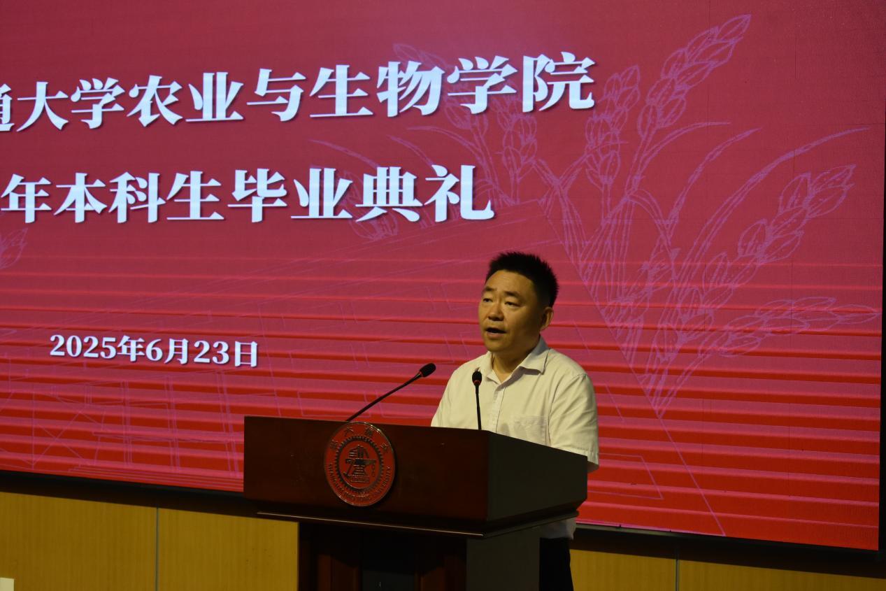 6月23日上午,上海交通大学农业与生物学院2025年本科生毕业典礼在学院A楼报告厅隆重举行。学院党委书记侯士兵、院长艾连中等党政领导,系主任、教工党支部书记、班主任、思政教师以及2025年本科毕业生共同出席典礼。仪式由学院党委副书记李文纯主持。