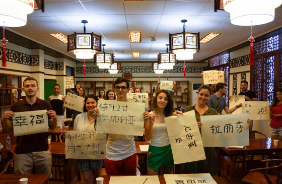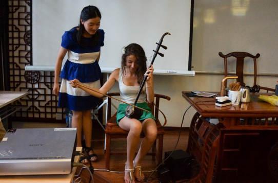 After the opening ceremony, students from Bulgaria and Shanghai Jiao Tong University visited the university history museum in Xuhui Campus and C.Y. Tung Maritime Museum. In the cultural exchange activities of between students in China and Bulgaria, students from Shanghai Jiao Tong University prepared for the erhu and flute performances. Bulgarian students were very eager to try to play Chinese traditional instruments. And under the guidance of students from Shanghai Jiao Tong University, Bulgarian students used the traditional Chinese calligraphy to write down the Chinese names they had learned in the courses of summer camp.