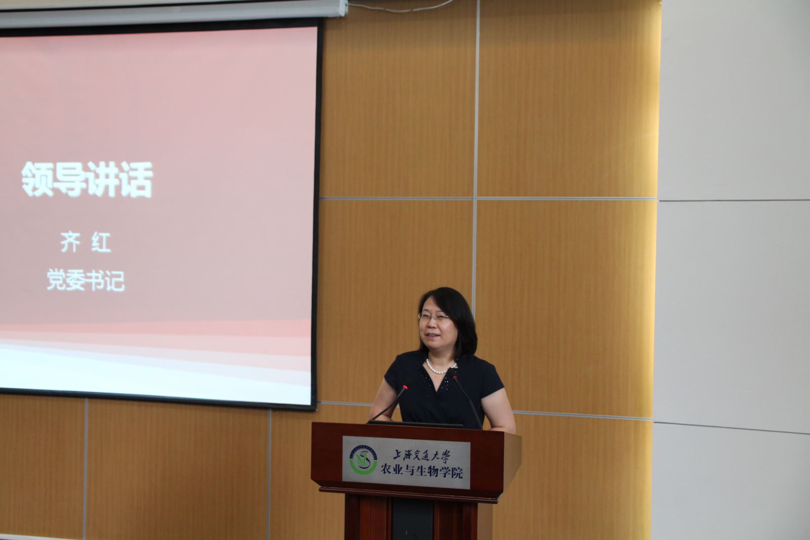 齐红代表农业与生物学院对2017级新生及家长表示诚挚欢迎和热烈祝贺,对家长们的辛勤付出表示衷心感谢。她介绍了学校和学院的前世今生,从交大“因图强而生、因改革而兴、因人才而盛”的历史方位出发,分享了交大与祖国一起共同成长的历程。她指出,农生院近二十年的历程,是顺应时代发展的历程,也实现了巨大飞跃。当前农生院拥有一支强大的师资队伍,希望农生学子“以农为耀”,坚定信念、执着追求。她强调,大学是人生中最大的机遇,希望同学们建立正确的人生观、世界观和价值观,要树立远大理想和目标,更要有大爱之心,做一个善良的人。最后,她表达了对在座的家长和学生的衷心祝福。