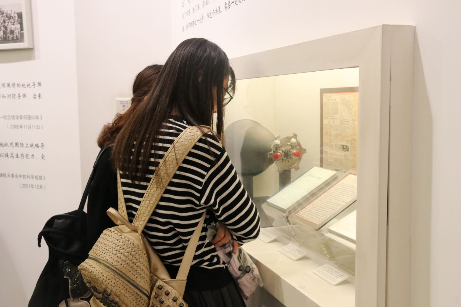 走进图书馆,同学们就被序厅里的红色的立体造型——“升腾的智慧”和背后的钱学森头像雕塑所吸引。在讲解员的引导下,全体新生分三批参观了钱学森图书馆的四个展厅,依次了解了钱学森对中国导弹航天事业的巨大的贡献,学习了钱学森在空气动力学、固体力学、稀薄空气动力学等领域研究上取得的诸多成就,感受了钱学森始终把自己的命运和祖国人民紧紧相连的爱国情怀和勇挑重担、艰苦奋斗、无私奉献的崇高品质。