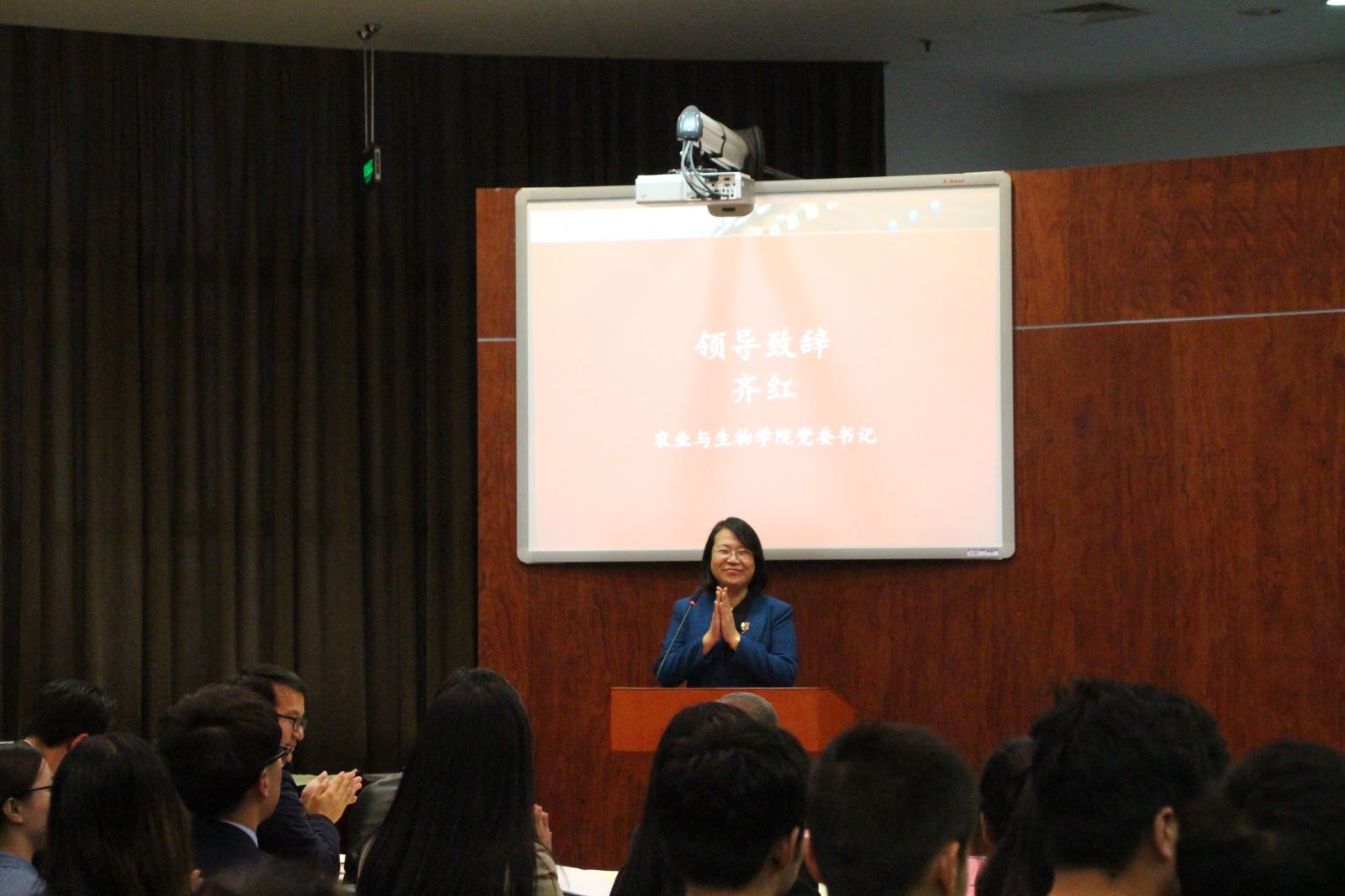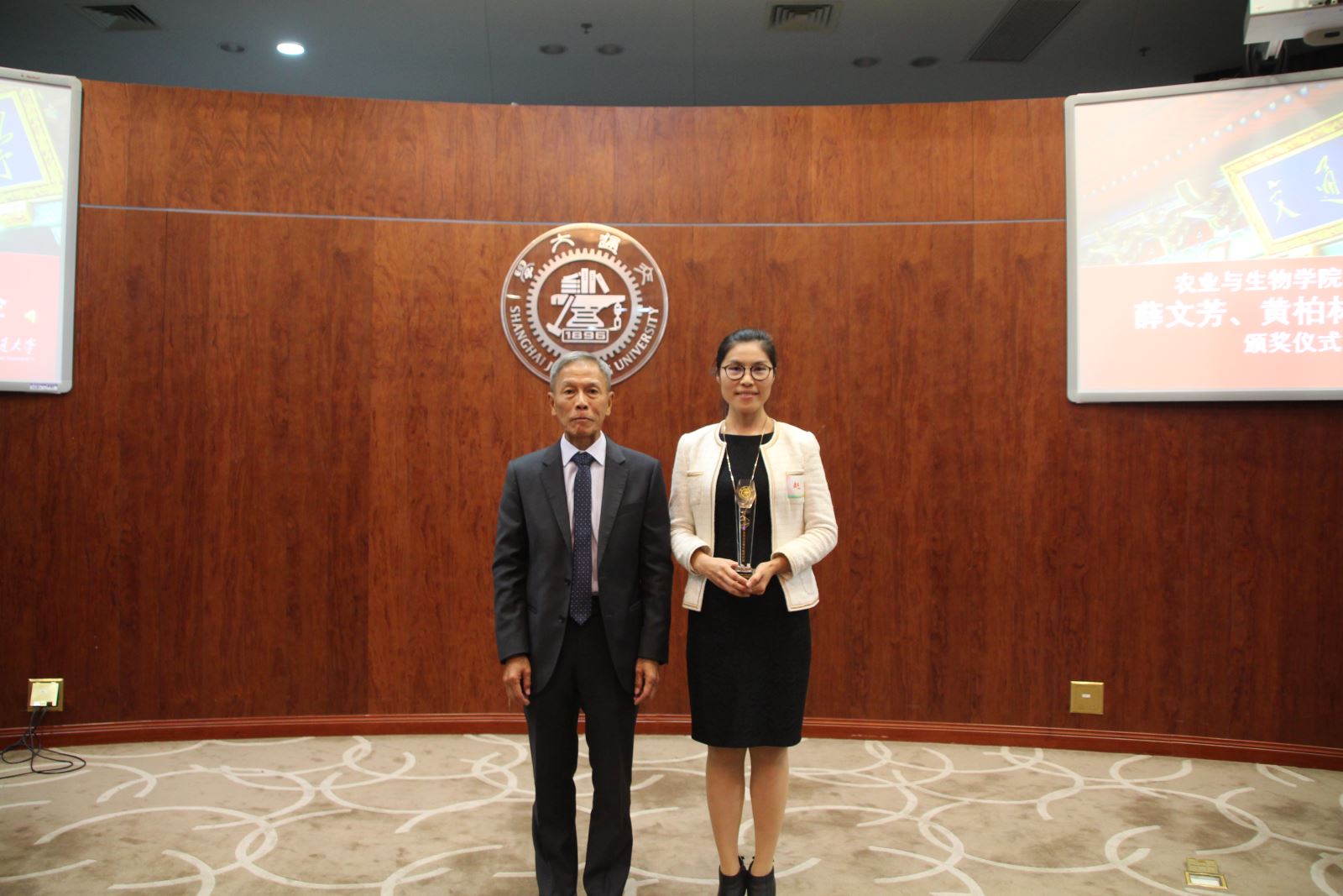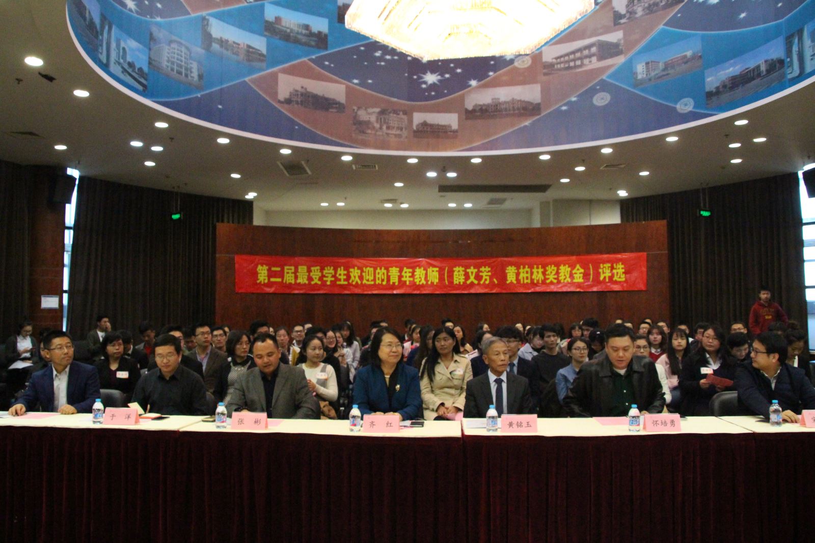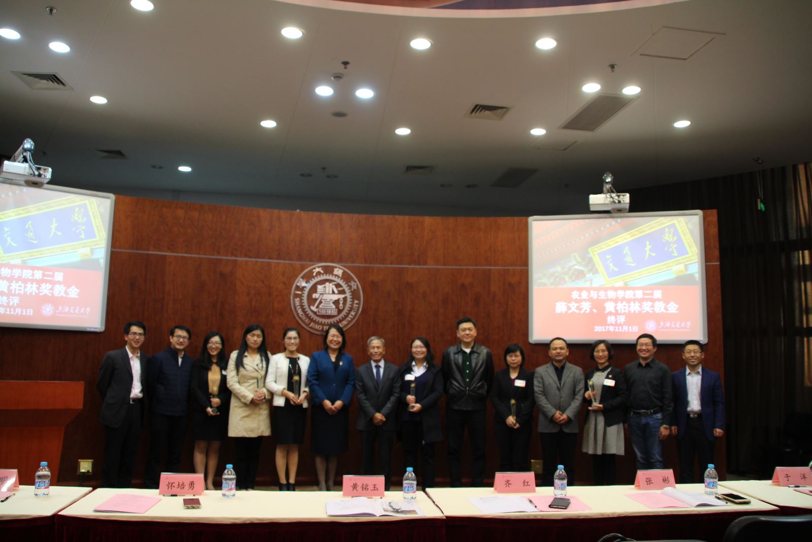 11月1日,上海交通大学农业与生物学院第二届最受学生欢迎青年教师(薛文芳、黄柏林奖教金)终评大会在闵行校区图书馆信息楼9楼报告厅举行。台湾技高集团董事长黄铭玉,上海华商投资有限公司总裁怀培勇,中航建设集团上海公司副总经理张彬,校团委副书记宋续明,基金会项目管理部主任于洋,农业与生物学院党委书记齐红、党委副书记龚强,六位入围第二届奖教金终评的青年教师及各院系80名学生评委出席本次评选活动。大会由龚强主持。