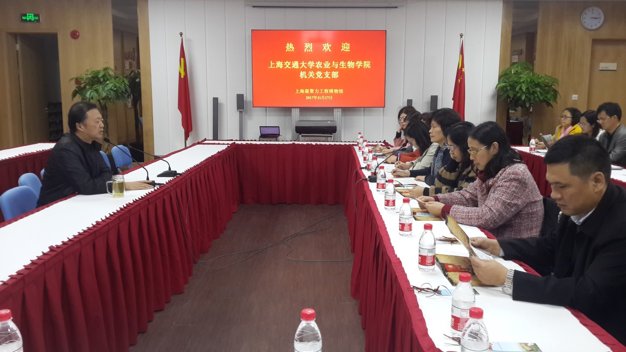 11月17日下午,农业与生物学院机关党支部的党员们赴“两学一做”教育红色基地——上海市凝聚力工程博物馆参观学习,开展主题党员日活动。凝聚力工程博物馆的馆长朱苏灵与党员们亲切座谈,并为党员们带来了一堂生动的党课。