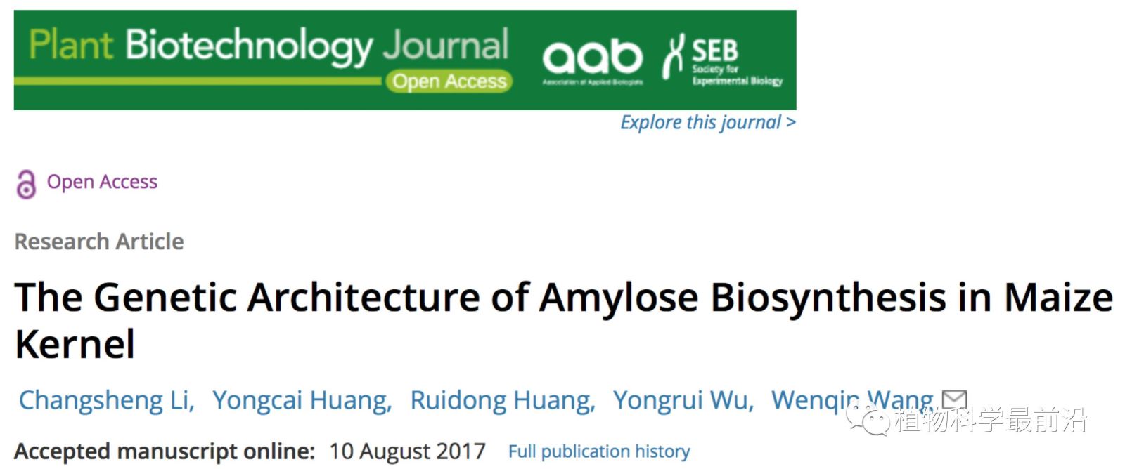 该研究由上海交通大学王文琴与中国科学院上海植物生理生态研究所巫永睿研究组以及沈阳农业大学黄瑞东研究组合作完成,博士生李长生为论文第一作者与博士生黄永才合作完成。相关工作得到了国家科技部七大作物育种和中科院先导项目的资助。该项目所用的自然群体得到中国农业大学赖锦盛教授的大力支持。