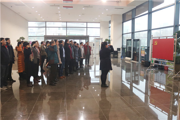 双方支部成员在钱学森图书馆重温了入党宣誓,并一同参观学习了两弹一星功勋科学家钱学森的事迹以及十九大成果展板。