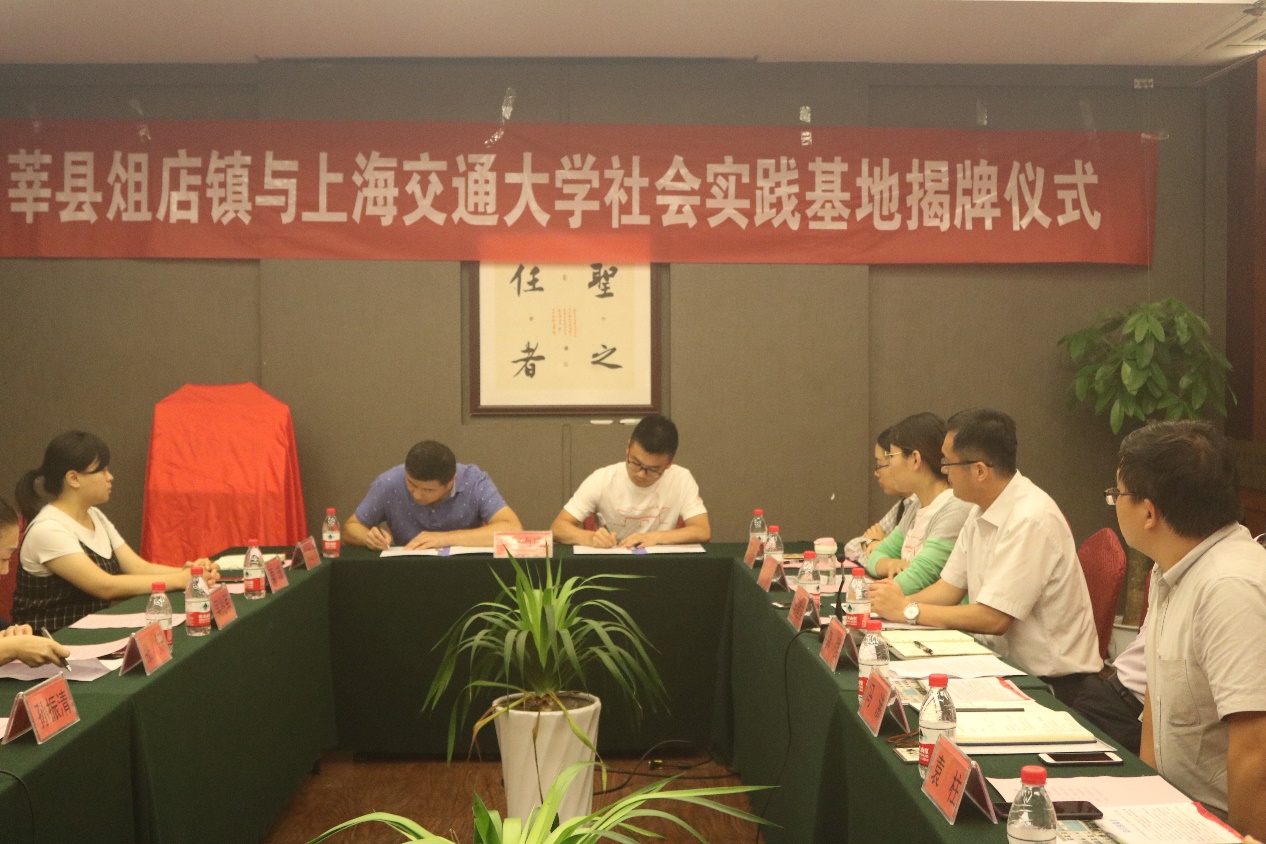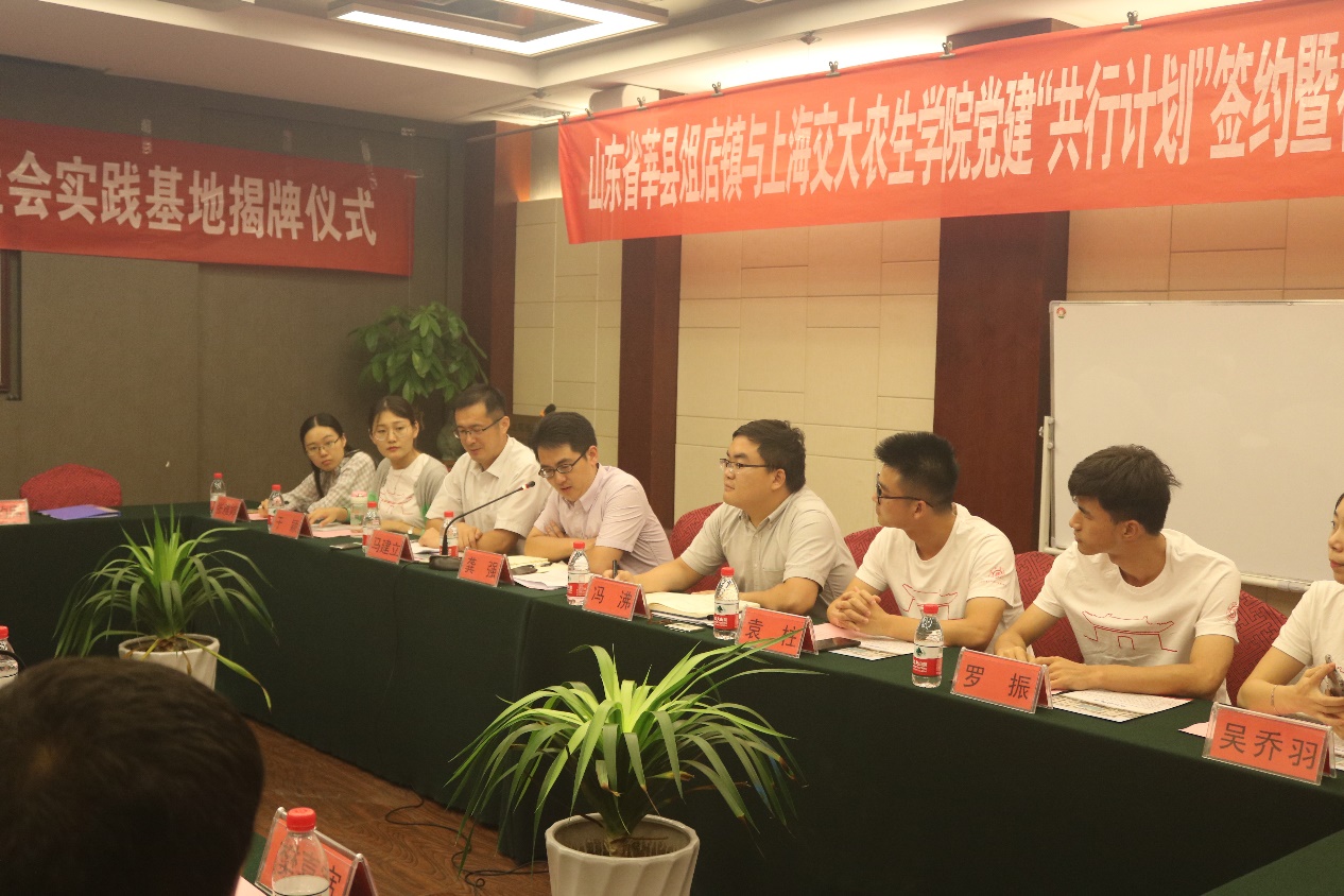 7月14日下午,山东莘县俎店镇俎店村党支部与上海交通大学农业与生物学院园艺学研究生第二党支部“共行计划”共建签约和“社会实践基地”揭牌仪式在莘县培训中心举行。莘县科技局局长孙振清,俎店镇党委书记张妍、镇长吴丰及镇党委、人大、俎店村党支部等相关负责同志参加活动。