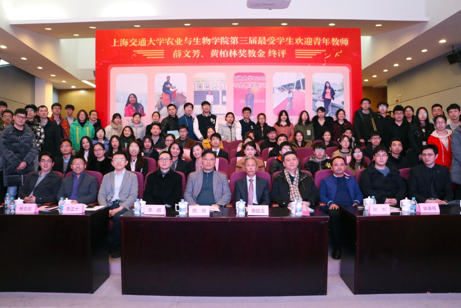 2019年3月5日,上海交通大学农业与生物学院第三届“最受学生欢迎的青年教师暨薛文芳、黄柏林奖教金”终评活动在农业与生物学院报告厅举行。台湾技高工业集团股份公司董事长黄铭玉,中国新闻社上海分社社长李鹏,上海华商投资有限公司执行董事怀培勇,上海富顺装饰工程有限公司总经理张彬,上海华商商务咨询有限公司总经理李正十,农业与生物学院党委书记周培,共青团上海交通大学委员会副书记巢睿祺,农业与生物学院党委副书记龚强,6位入围终评的青年教师,历届获奖教师代表以及各院系80余名学生代表参加大会。大会由龚强主持。