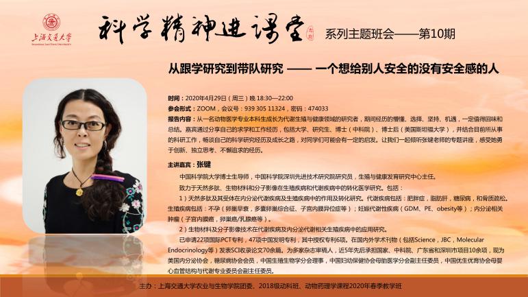 脑中有科学,心头存道义。为了塑造学生的科学精神,启发学生不畏艰险、勇于创新、不懈追求、独立思考的精神特质,2020年4月29日18:30,由上海交通大学农业与生物学院团委、2018级动科班、动物药理学课程2020年春季教学班共同主办的“科学精神进课堂”系列主题班会顺利开展。