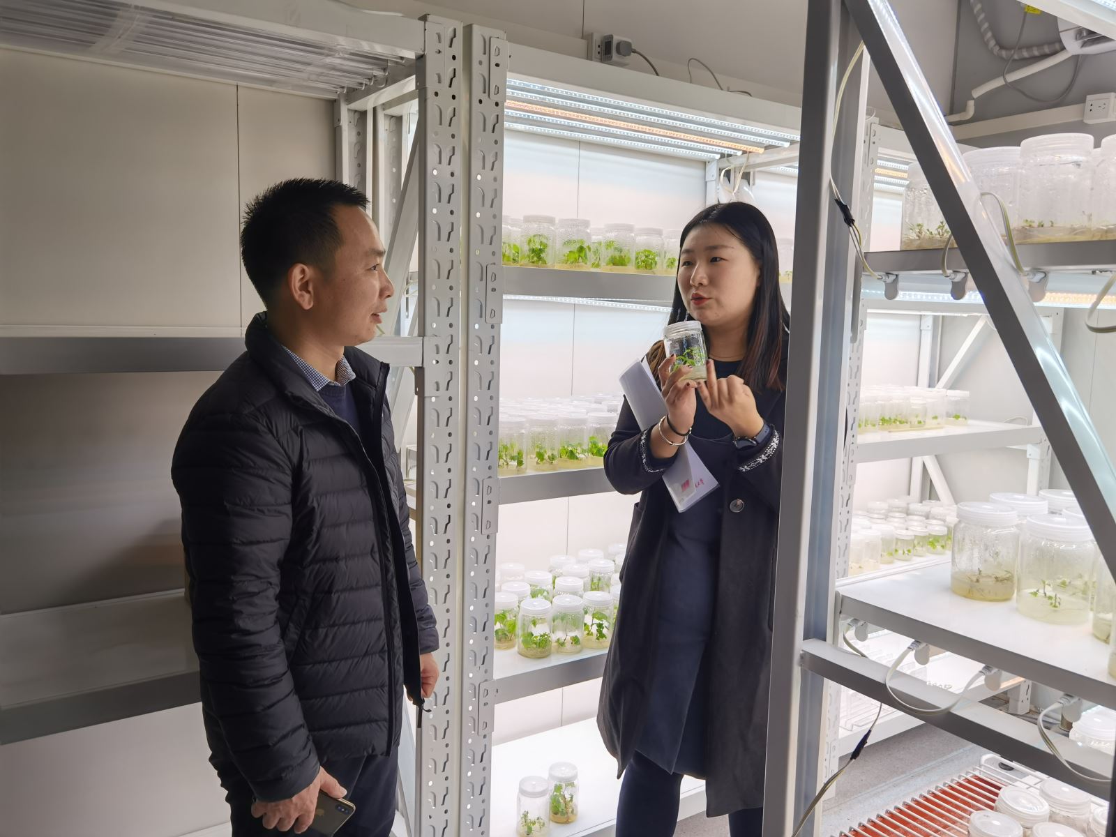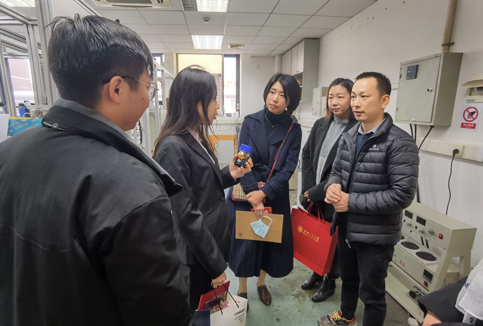 会后,获奖学生带领朝珈公司来宾前往参观各自的实验室,并向他们介绍了日常的科研学习生活。