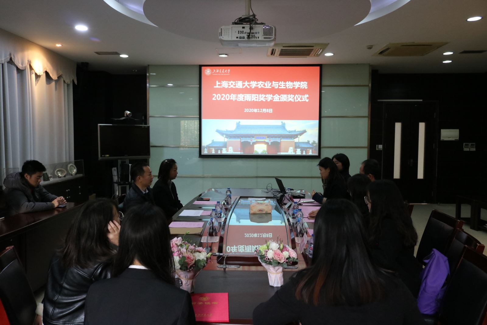 12月8日下午,上海交通大学农业与生物与学院“2020年度雨阳奖学金颁奖仪式”在农业与生物学院A楼0-102会议室举行。上海朝珈贸易有限公司销售部总监马杰林先生、零售部主管孙婵妮女士、人事部主管侯丽雯女士、农业与生物学院党委副书记郑浩老师、学工办主任金丽鑫老师、辅导员陈颖出席了颁奖仪式。参加本次颁奖仪式的还有2020年度雨阳奖学金获奖学生以及学院学生代表。颁奖仪式由思政教师李明主持。