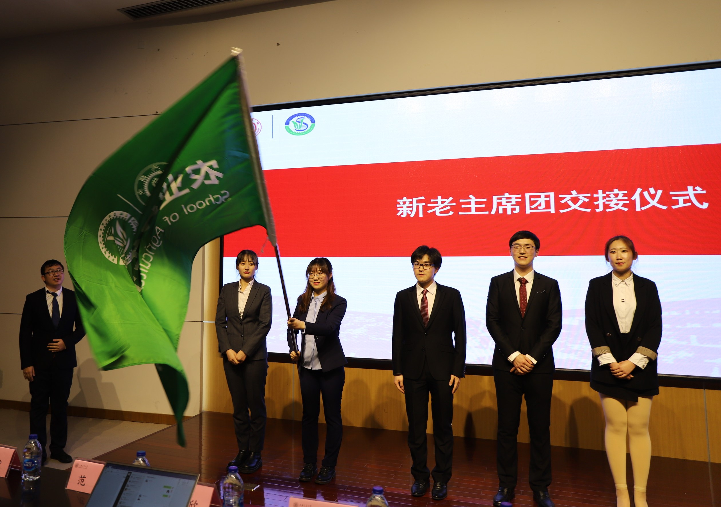 在审议通过《上海交通大学农业与生物学院第十九届研究生会主席团选举办法》后,进行了无记名投票选举,并公布新一届主席团成员名单,新老主席团在会上举行了授旗仪式。