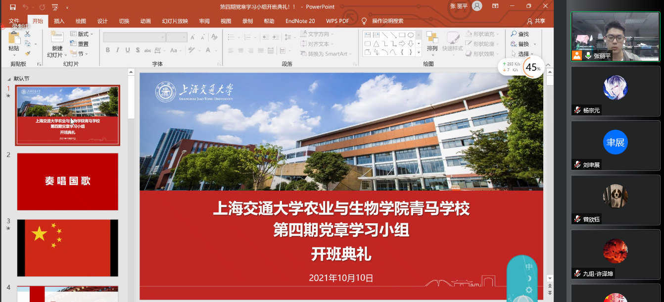 2021年10月10日晚,农业与生物学院青马学校第四期党章学习小组开班典礼暨习近平总书记在纪念辛亥革命110周年大会上的讲话精神学习活动在腾讯会议线上平台顺利举行。学院党建指导老师李明、党章学习小组班主任张丽平、副班主任杨宗元以及全体学员参加了本次活动。本次活动由杨宗元主持。