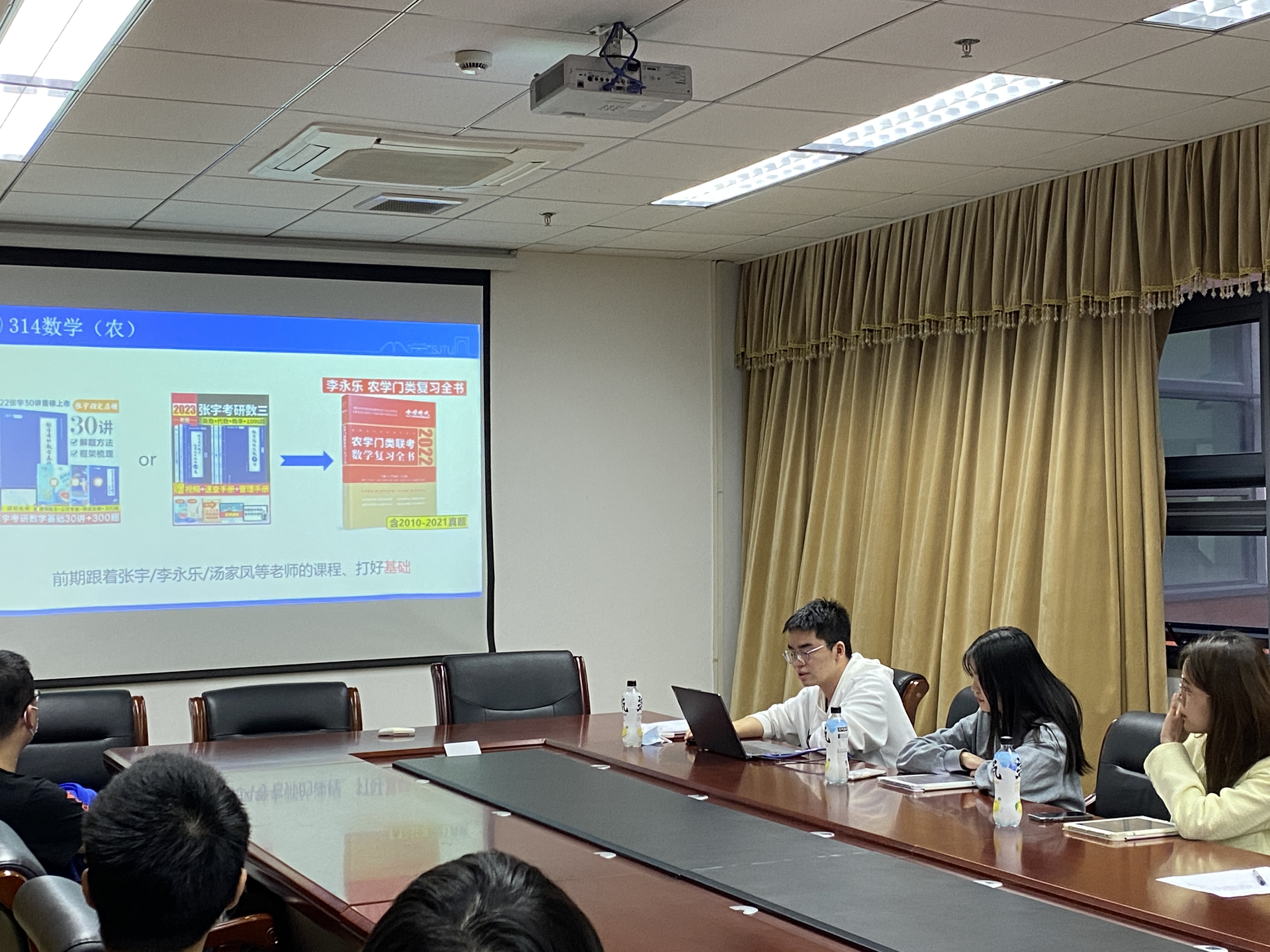 园艺学2022级硕士生游翔凯分享了自己在数学和专业课学习上的得失,同时展示了自己搜索考研信息的渠道和方式。在紧张的考研学习中如何高效地进行信息的搜集和汇总也是备受同学们关注的问题,在座的同学们都表示收获颇多。