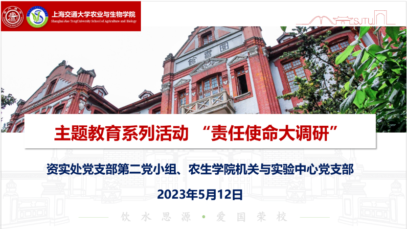 5月12日上午,学校资产管理与实验室处党支部第二党小组和农业与生物学院机关与实验中心党支部公共仪器与资产管理平台党小组联合召开了“主题教育系列活动”——责任使命大调研活动。资实处处长张兆国、农业与生物学院院长薛红卫、资实处副处长彭华松、农业与生物学院副院长刘志诚、副书记兼机关与实验中心党支部书记李文纯、资实处实验室管理办公室、固定资产管理办公室、技术安全办公室、以及农业与生物学院公共仪器与资产管理平台的办公室主任和工作人员共同参加。