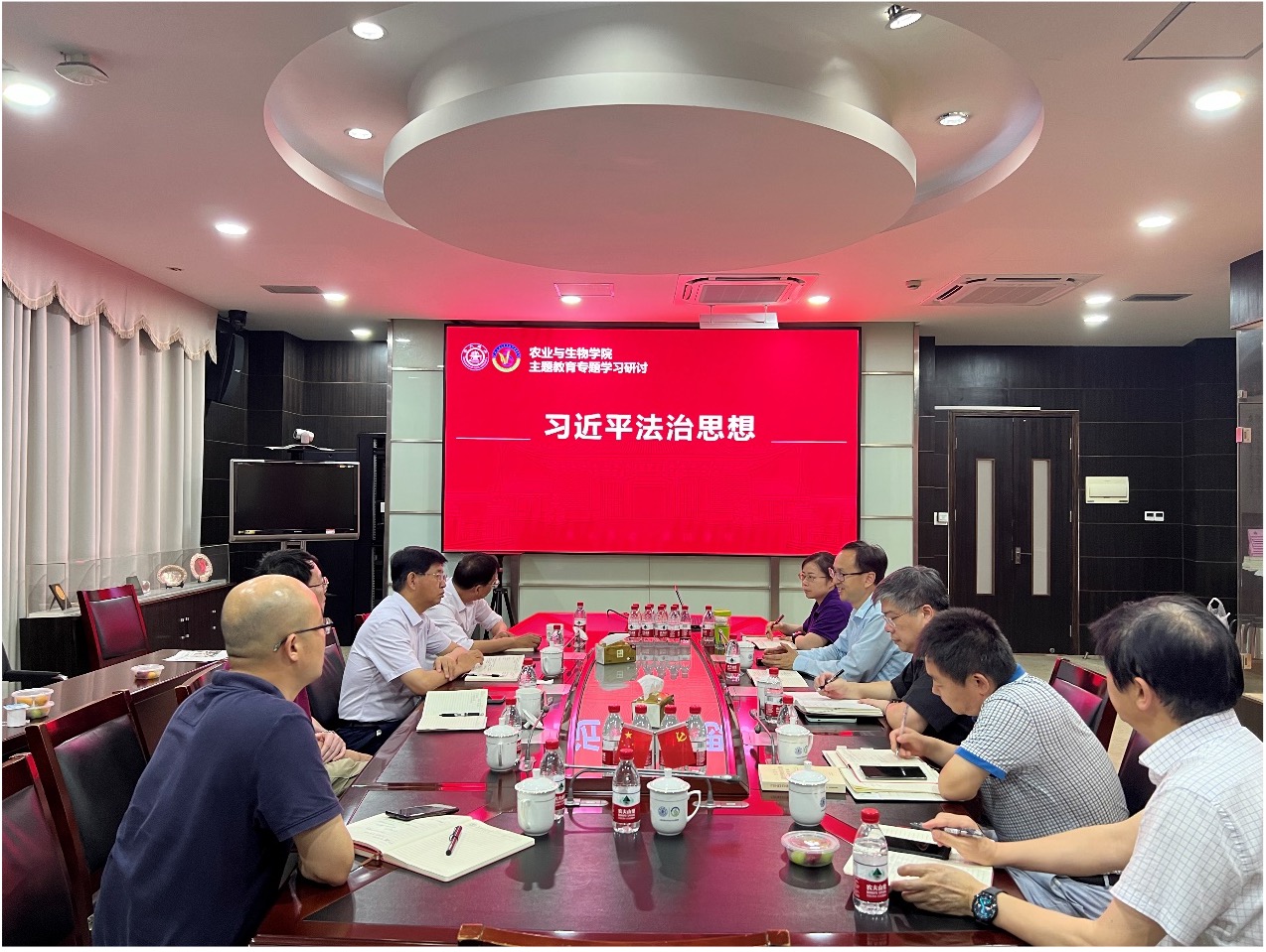 6月12日,农业与生物学院党委理论学习中心组召开主题教育第七次集中学习研讨会,学习习近平法治思想和浙江“千万工程”经验,学院党委书记侯士兵、院长薛红卫等全体中心组成员和领导班子成员参加会议。会议由侯士兵主持。