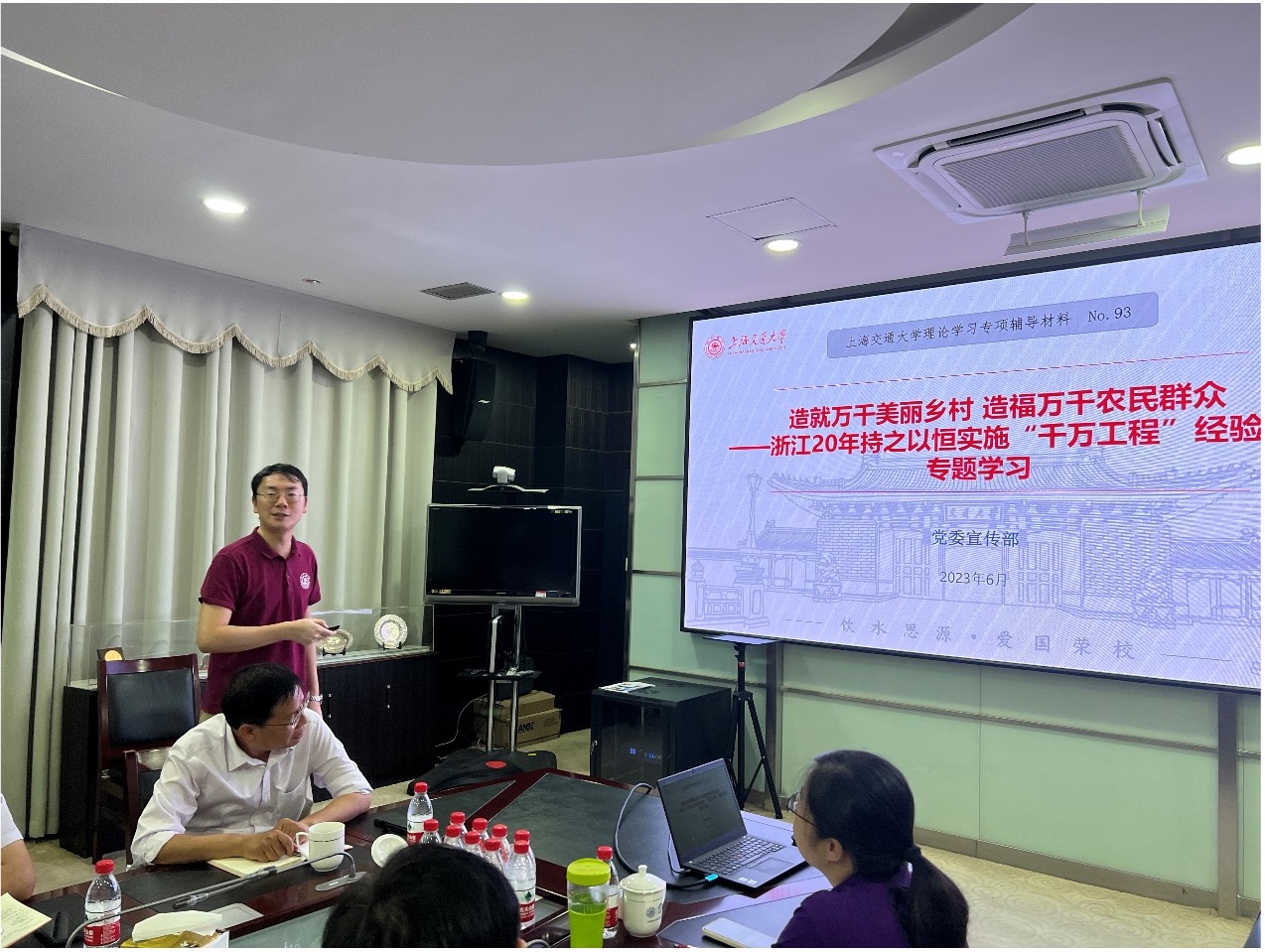 与会人员结合工作实际交流学习体会,并围绕乡村振兴、学院核心竞争力等问题展开讨论。大家一致认为,“千万工程”是习近平总书记在浙江工作时亲自谋划、亲自部署、亲自推动的一项重大决策,全面实施 20 年来深刻改变了浙江农村的面貌,探索出一条加强农村人居环境整治、全面推进乡村振兴、建设美丽中国的科学路径。“千万工程”充分彰显了习近平总书记以非凡魄力开辟新路的远见卓识和战略眼光,全面展现了人民群众伟大实践同人民领袖伟大思想、伟大情怀相互激荡形成的凝聚力和创造力。总结推广“千万工程”的有益经验,对推动学习贯彻习近平新时代中国特色社会主义思想走深走实,完成艰巨繁重的改革发展稳定任务,具有特殊重要意义。