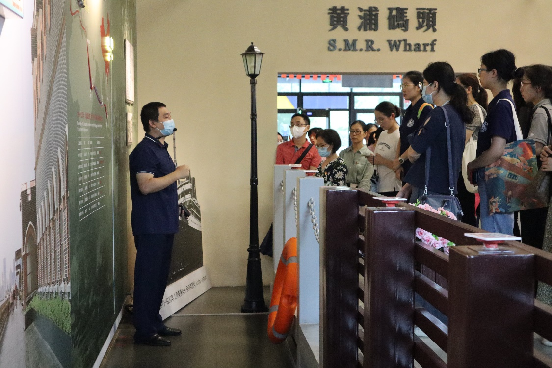 支部共行计划的第一个活动是参观秦皇岛路游船码头候船大厅的半开放式陈展,通过讲解员对于图像、展板、声音、实物的讲解,深度体会和还原百年前留法勤工俭学运动的历史场景。