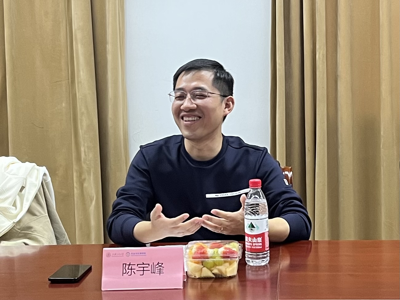 会上,同学们交流了当前学习、科研工作的情况和有关未来的一些规划。陈宇峰学长亲切地讲述了自己在交大求学期间的经历与趣事,分享了自己进行职业选择、人生规划的一些感受。同学们和陈宇峰学长交流了自己的困惑与迷茫,学长耐心认真地回答了大家的问题,现场气氛热烈。