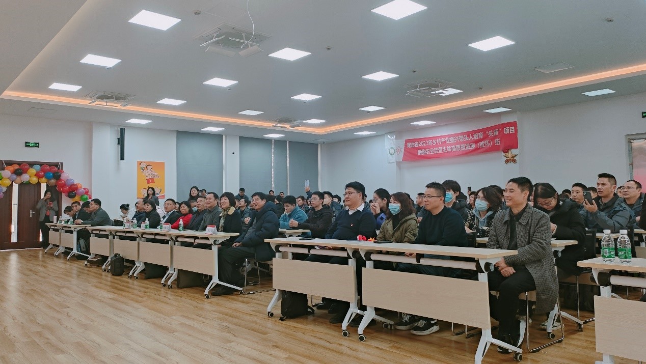 随后,师生团一行受邀请观摩了湖北省乡村产业振兴带头人培育“头雁”项目的结业典礼。该项目是交通大学培育壮大乡村振兴人才队伍的重要举措。通过观摩“头雁”项目学员们的成果汇报,参会师生深受鼓舞和感动,加深了对现代农业的了解,坚定了投身农业科学研究的动力。