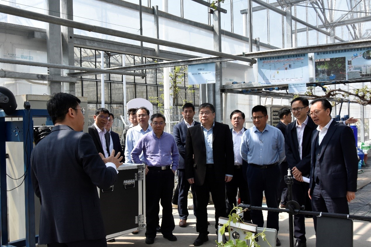 在农业与生物学院葡萄栽培研究室温室基地,国家葡萄产业技术体系设施栽培岗位王磊副研究员代表团队作讲解,从品质提升和省力化、机械化管理葡萄、柑橘高质量栽培技术开发与产业化应用等方面进行详细介绍,并重点展示了现代农业、机械、自动化融合的创新成果——我国首套智慧型无人化葡萄肥水精准供给系统。