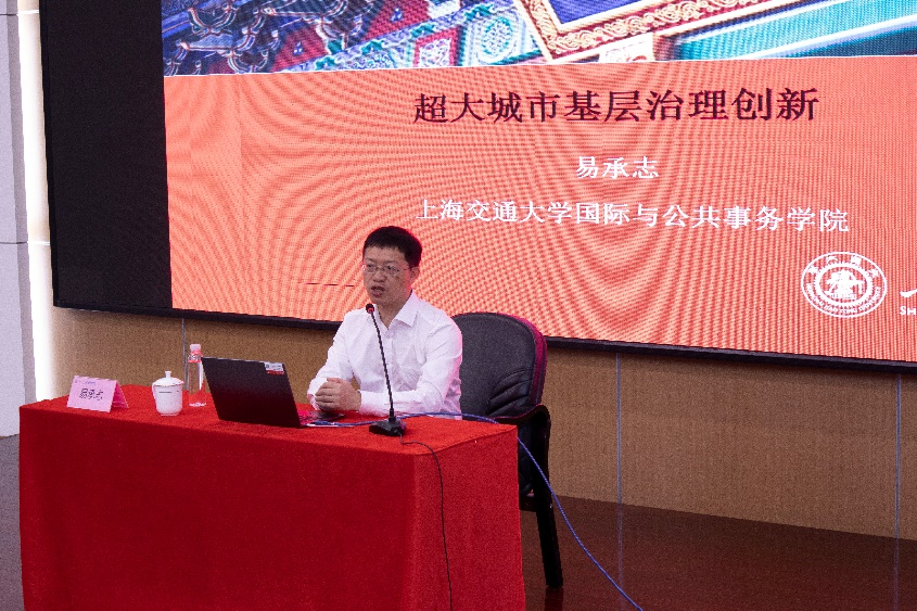 易承志从因何创新、为何创新、创新何为、如何创新四个方面进行授课。他从超大城市基层治理创新的背景切入,对中国内地地方行政层级与城市规模划分新标准进行介绍,通过列举常见城市病,如生态环境恶化、公共设施拥挤、城市资源紧张、生活质量下降等,阐明超大城市正在由传统规模扩张式和外延增长式的发展向内涵式发展转变的问题。