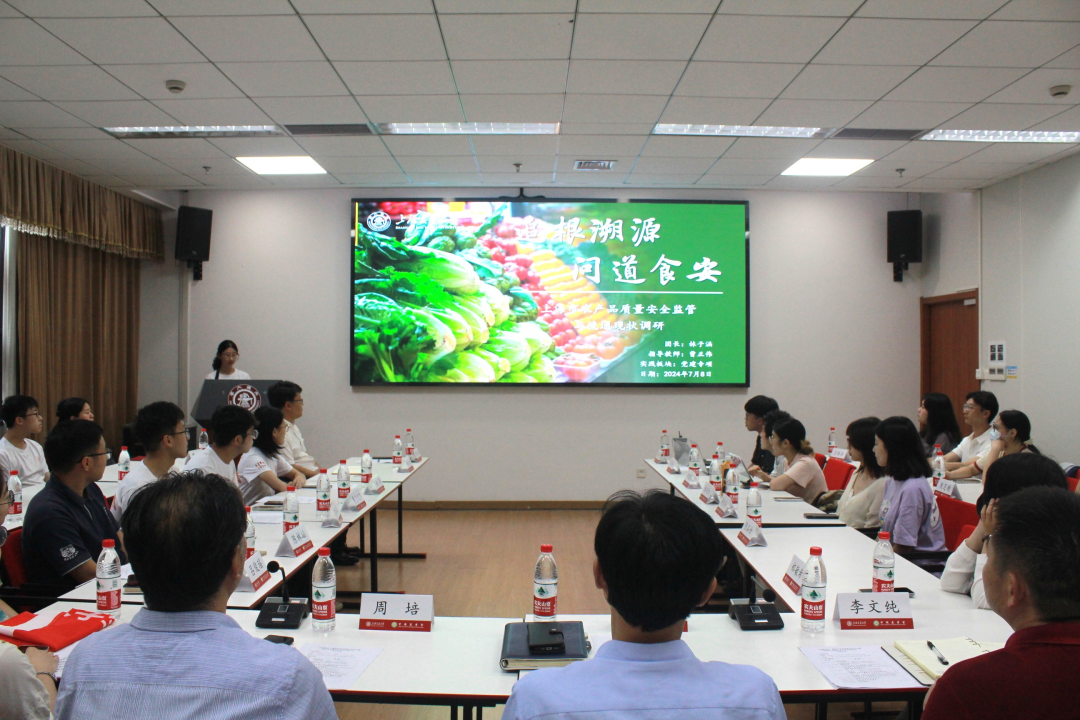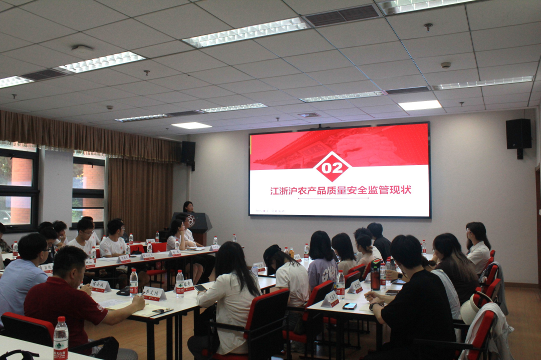 暑期社会实践团出征仪式隆重举行。团长林子涵介绍了实践调研的背景与意义,汇报了项目亮点、准备进展和工作安排。农业与生物学院3位学生代表对调研前期研究进行了多角度讨论。赵茜汇报了江浙沪农产品质量安全监管的现状、存在的问题和解决路径设想;塞尔达尔结合具体案例介绍了四类典型农产品流通方式,并分析不同模式的优缺点及优化策略;陈禹良结合粮食安全和食品安全的典型案例,提出了政府、企业、社会公众等多方推进社会共治的举措建议。