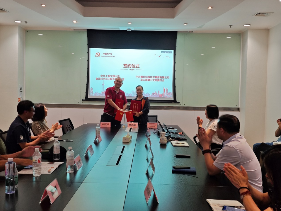 7月22日上午,在农业与生物学院党委书记侯士兵的指导下,上海交通大学食品科学与工程系教工党支部赴通标标准技术服务有限公司(SGS)落实了上海交通大学教职工党员教育社会实践项目。食品支部-SGS宜山路第五党支部党建共建合作协议签约仪式在SGS总部顺利举行。SGS农产食品部副总监李建平、农产食品部技术经理张红梅、SGS党总支书记兼第五党支部书记曲春阳、第五支部组织委员章婧、宣传委员徐静,农生学院党委委员兼食品支部书记王大鹏、组织委员焦顺山、宣传委员鲁伟、纪检委员陈守慧等20名师生参与了项目实施。活动由曲春阳同志主持。