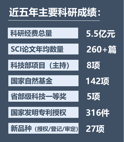 围绕国家战略,学院在特色园艺作物、动植物种质创新、食品科学等领域取得一批原创性科研成果,在Science、Nature Plants、PNAS等高影响期刊发表多篇论文,获得多项国家级和省部级科技奖项。