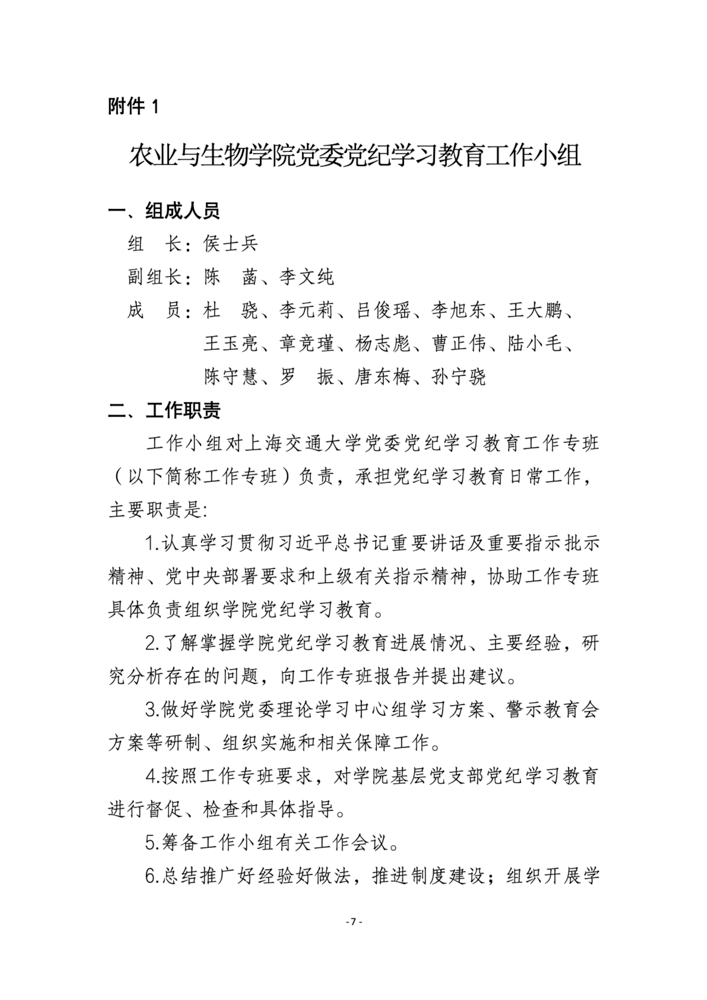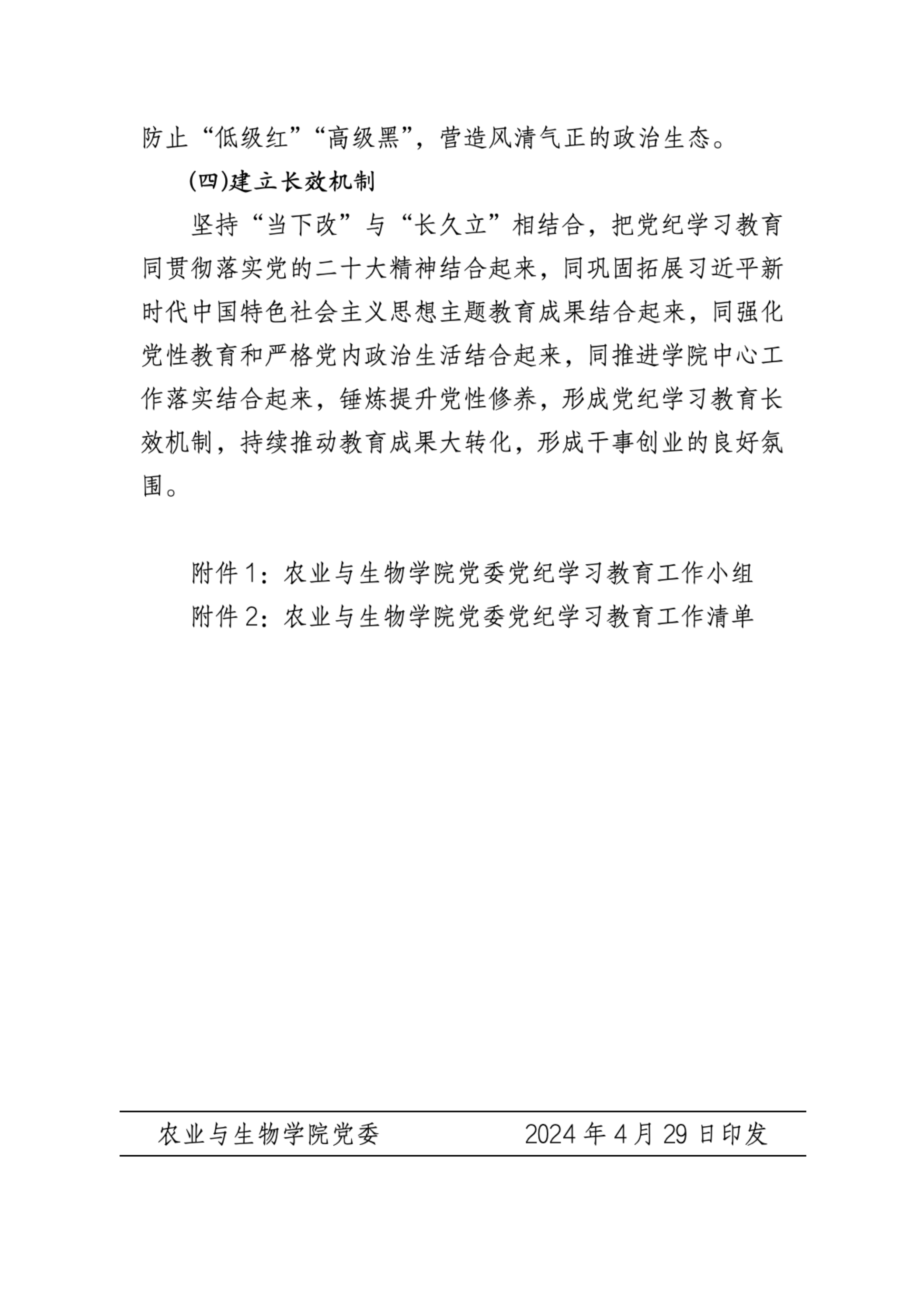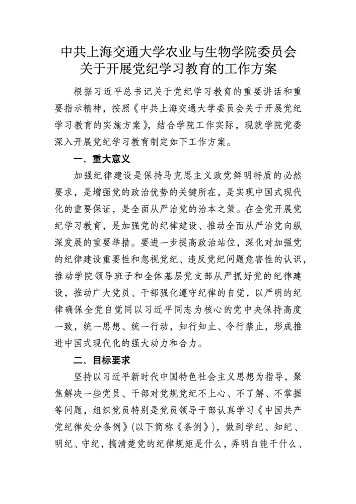 农生院委〔2024〕3号 关于印发《中共上海交通大学农业与生物学院委员会关于开展党纪学习教育的工作方案》的通知