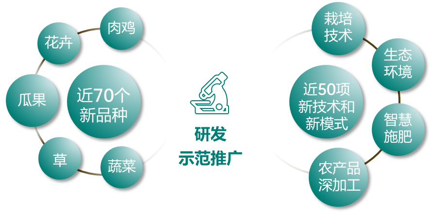 依托新农村发展研究院,探索高校产学研创新模式,深耕农业科技示范推广。新农村发展研究院与农业与生物学院“一体两翼”、“相辅相成”,共同践行着交大农科“顶天立地”的发展战略。面向社会主义新农村建设(乡村振兴)需求,联合地方政府、龙头企业(合作社),通过共建教授工作站(室)、研发基地、示范基地、培训基地等,支撑产业发展和乡村建设。